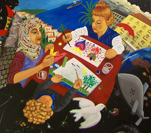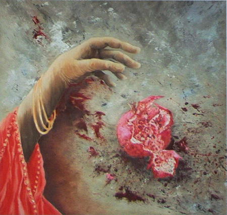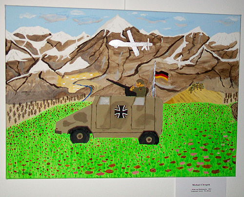 mit ihren Ölgemälden u. a. „Afghanische Hochzeit”, „Kleiner Kollateralschaden” und