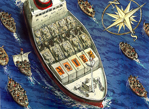 kleinere Skulpturen mit, die die dramatischen Ereignisse der Zuwanderung nach