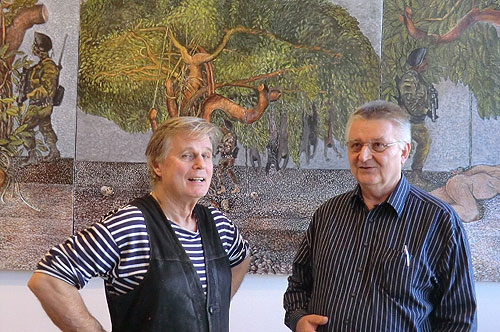 uns sein riesiges Triptychon „Bajo de arbol” vor. Er hält sich oft in Südamerika auf