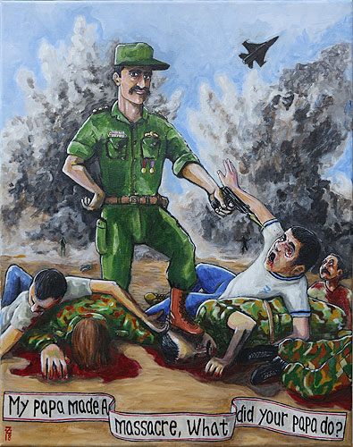 My Papa made a massacre, what did your Papa do? (2018) Acryl auf Leinwand • 43 x 53 cm |