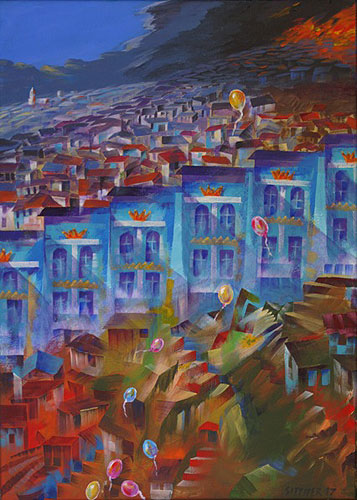 Dahinten brennt's (2017) Acryl auf Leinwand • 50 x 70 cm |