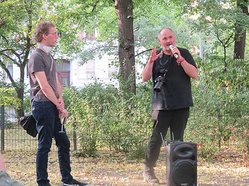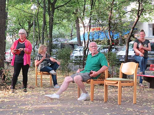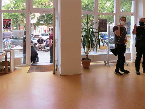 Die Vernissage selbst fand aufgrund der Temperaturen und Corona in einer nahe gelegenen Grünanlage statt. Die Veranstaltung war