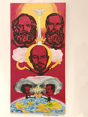 Künstler und Spieleerfinder Joachim Geserick präsentierte sein Spiel „Mensch & Natur – Brettspiel für Ökologie und Sozialismus”