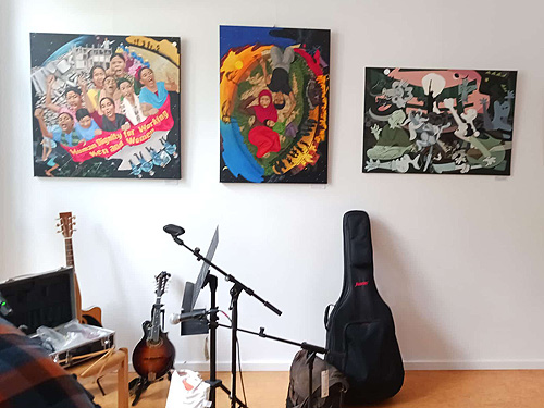 anwesenden Künstler*innen Gelegenheit, sich über aktuelle Projekte auszutauschen.
